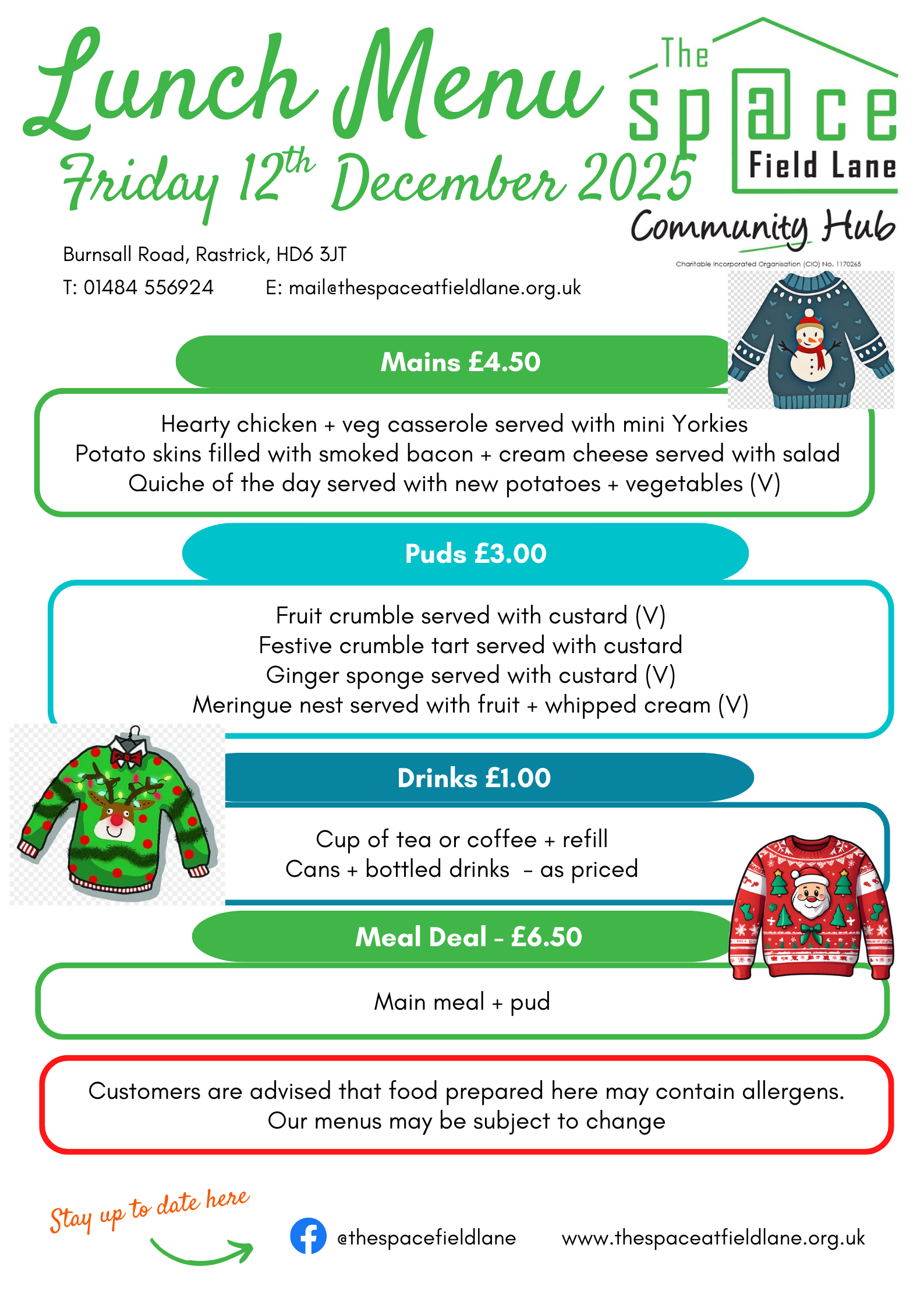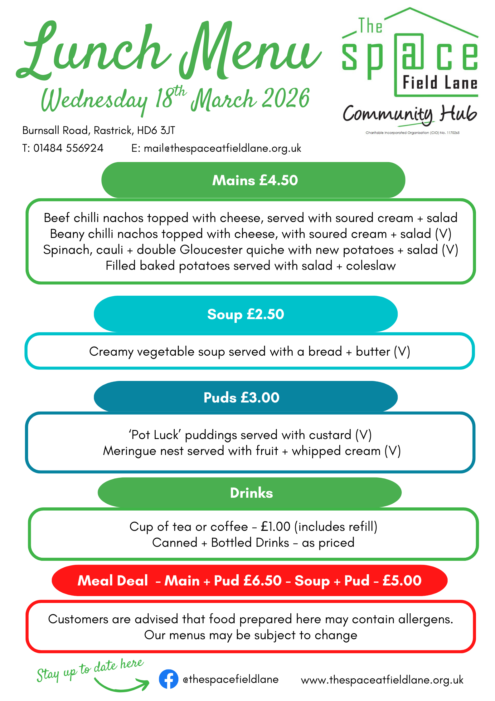 Our community café is open Wednesdays and Fridays 12 noon to 2pm